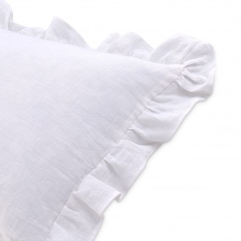 Dress you bed with soft romantic ruffles. Our Cherry Hill Duvet set is made from linen flax grown in Belgium and woven in China. Garment washed linen is soft and cool to the touch and will become more supple with time. The duvet is self backed and finished with a hidden button closure while the shams and euro shams are made with envelope back closures. Finally the boudoir pillow is feather filled with removable cover.