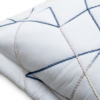 With geometric blue space-dyed embroidery stitching crisscrossing the crisp white cotton ground, the Lennox comforter set is the perfect addition to your bedroom or guest room. This quilt is not only comfortable but lightweight, making it the perfect bedding essential. Transform any space into a restful retreat instantly. Shams and euro shams included.