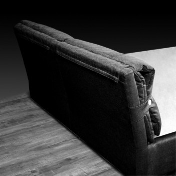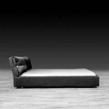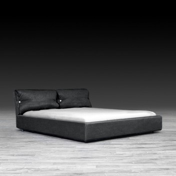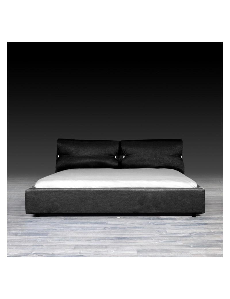 Nick Black bed is made with removable fabric upholstered headboard and rails. It features two over stuffed pillows that are held with two straps finished with over-sized buttons to add to its appearance. The removable covers are perfect for in home or professional cleaning purposes. Th bed includes a European wooden slat.
