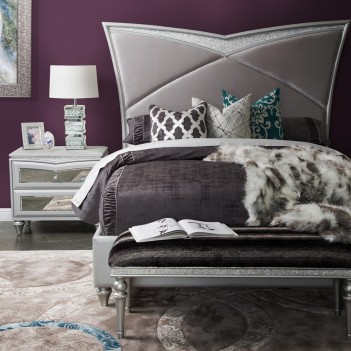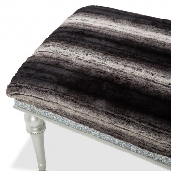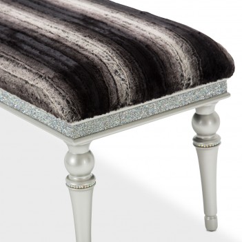 Accent your Glam home in elegance. The Melrose Plaza Bed Bench is perfect for draping throws, adding extra seating, and perfecting your bedroom style. Upholstered in plush faux fur, the two-tone blend adds the luxe contrast you need while the brilliant crystal trim and platinum finished legs tie the room together.