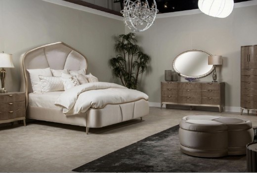 Curved Panel Bed Malibu Crest Chardonnay Finish Collection by Michael Amini. 9007000QN3CR-822