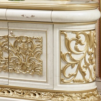 This solid wood buffet from the HD-903 collection by Homey Design will make a fine addition to your classic dining room. Buffet features spacious storage for your dinnerware and radiates luxury and elegance vibe through intricately carved details and scrolled accents finished in antique gold.