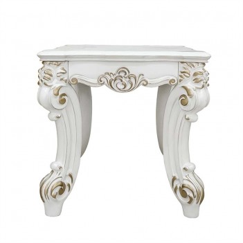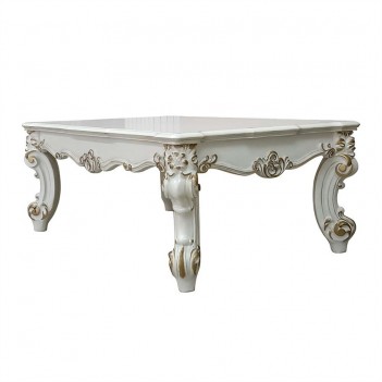 Vendome II TWO TONE IVORY FABRIC ANTIQUE PEARL FINSIH Tracing back to the classical Baroque era, expressed with intent and conviction, our new interpretation of Vendome II is donned. The Vendome II sofa’s two tone ivory fabric is grand and classy with crystal like button tufting on the back in a crackled gold patina finish richly accented with gold leaf brushed onto each piece by hand. The carved frame Decor and nailhead trim around the crown, arm, and base accentuate style and class. Pillows are included for additional comfort and support. Fully Assembled.