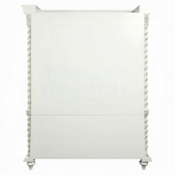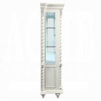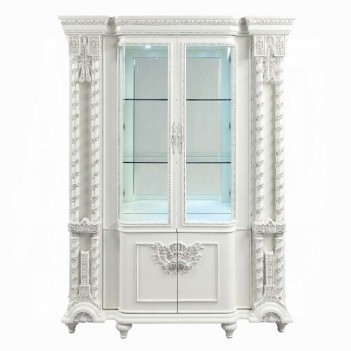 Sophisticated luxury radiates beautifully in the Vanaheim Dining Room Collection. Fabulous floral design with gorgeous details in each piece makes the collection classical and timeless. Antique white finish gives the surface an alluring feel and elegant touch. A clear glass dining table top allows light to filter into and through the whole table, enhancing the collection's overall design. Upholstery side chairs feature elaborate button-tufted design for adding extra style and comfort to the collection. This extremely extravagant style will make any ordinary dining room appear much more unique.