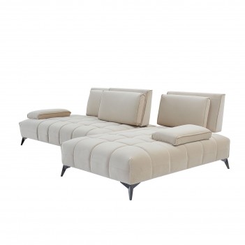 Francesco Adjustable back sofa chaise features a lush velvet fabric and a functional adjustable back. The combination of modern polished black stainless steels legs. The Francesco sofa chaise is available in right and left sectional formats. The perfect balance of functionality and comfort.