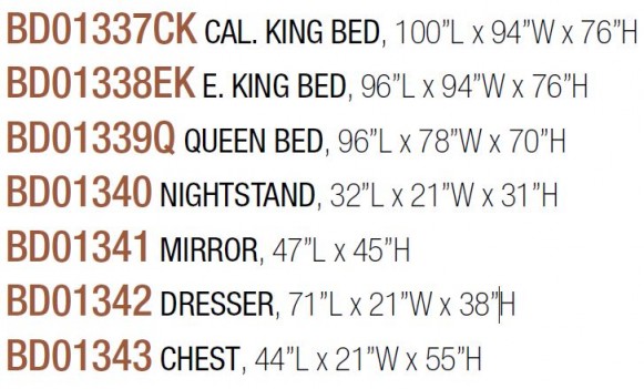 A.BD01337CK CAL. KING BED, 100”L x 94”W x 76”H