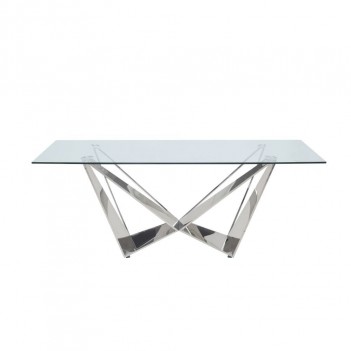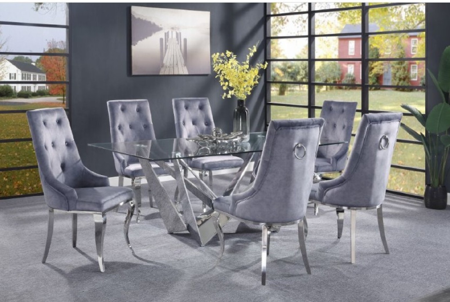 The Dekel dining set brings a modern twist to classic Hollywood glamor with glimmering glass and stainless steel. The unique angles of the dining table s metal base contrasts beautifully with the soft upholstery of the side chairs, which feature seat backs with button-tufting and decorative metal rings. Vintage glam style is easy to achieve with the Dekel dining set.