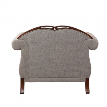A new addition to Acme's collection of exclusive designs, the Miyeon chair in cherry finish is full of handsome details. Nailhead trim along the padded seat base runs up the scrolled arms and arched seatbacks. Button tufting on the seatback makes the fabric upholstery look especially cozy. Raised floral motifs embellish the Queen Anne legs of the piece.