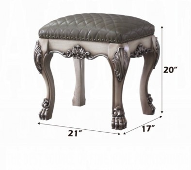 E. 28195 DRESDEN VANITY STOOL, 21”L x 17”D x 20”H, PU & Vintage Bone White Finish