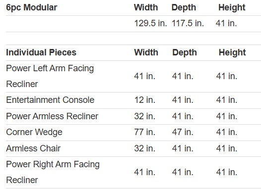 Dimensions: 129.5"W x 117.5"D x 41"H