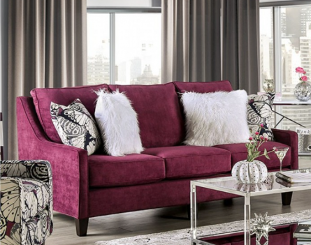 This fun and refreshingly modern design makes for a ‘plum’ of a sofa,thanks to its dynamic plum chenille fabric. American-made wood construction ensures the finest quality of the sofa and both the matching loveseat and chair that are ut sold separately.Together they make a terrific trio.
