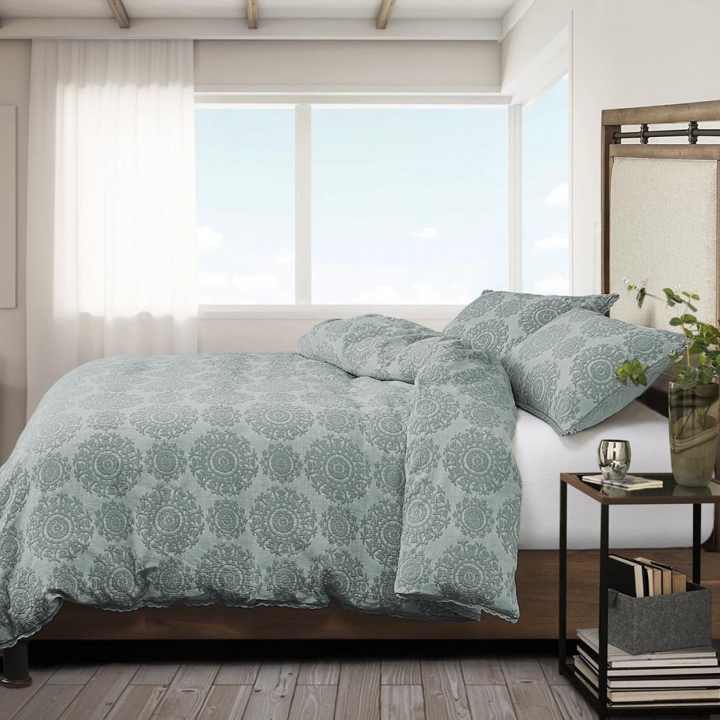 McKinley 3pc Queen Duvet Set Slate Blue by Michael Amini BCS-QD03-MCKNLY-SLB