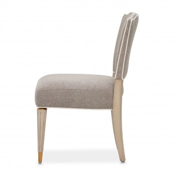 • The chair’s design is anchored by tapered legs with a Dove Gray finish, culminating with bronze-finish tips for a subtle touch of glamour.