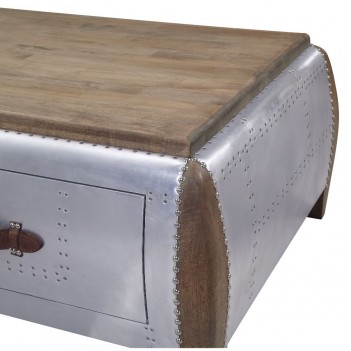 Combining antique oak with sleek aluminum the Brancaster rectangular coffee table will increase the industrial appeal of your living space. The base features tapered legs and nail-head trim, while the deep drawer gives you plenty of storage space for media, reading materials, and more.