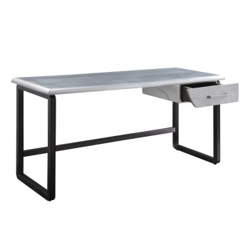 Switch up your style in the study with the clean-lined Brancaster desk, a perfect addition for achieving an industrial look. Whether you’re working from home or simply scrawling a quick to do list, having a spirited space to get things done always makes them more fun. This beautiful desk features a stunning patchwork aluminum top and sturdy metal sled legs. Matching case pieces for this modern masterpiece include a storage cabinet with three drawers. Offering a blank canvas for all your desktop ideas, this piece is perfect for any room décor.