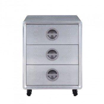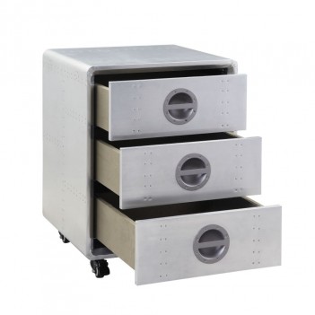 If you're looking for a place to store your office supplies, look no further. This Brancaster cabinet is made with an aluminum frame and three drawers, which will be ideal to create a neat and tidy office space. It has wheels so that it can be easily moved around your office. The piece has decorative rivets throughout its construction for an industrial look.
