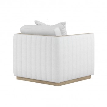 Vertical channeling on outside back and arms, Loose back cushions feature a foam and fiber fill, Loose seat cushion construction features layerd foam in a polybag, One (1) toss pillows included, Plinth style base and woo frame accents features Washed Oak finish