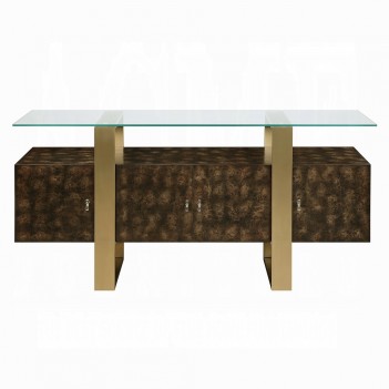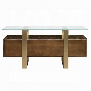 Elevate your home with this Mabyn console table. The brass and the antique finish give this piece a contemporary worldly appeal. It provides plenty of display space and storage. The sleek tempered glass tabletop will give your decor the illusion of floating. The metal brass base is elegant and provides the right amount of visual interest to the piece.