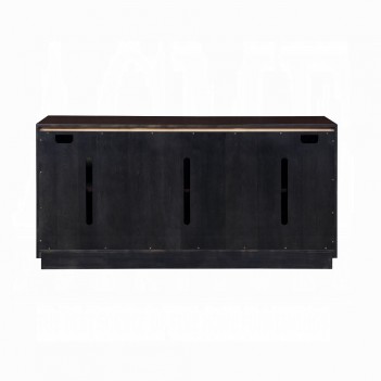 Our Geranio console cabinet has artfully scored antiqued metallic silver door fronts that are etched in an abstract design. The cabinet with its walnut finish illustrates the talent of our design team in achieving such a refined sense of texture on a metal surface. Behind the doors is one fixed shelf; the center portion features a media cable management cut-out making it easier to keep media consoles hidden when not in use.