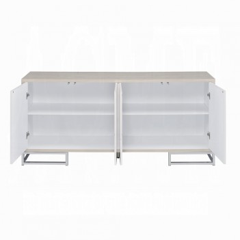 Bring a luxurious, modern look to your home with this Panos console cabinet that adds glam style to your entryway or dining room. It is finished in a white neutral hue that looks just right with its clean lines and faux marble door fronts. This sideboard has plenty of storage; two sets of trouble doors open to plenty of space to store everything from cloth napkins to your family's favorite cookbook. Plus, there's room on top for serving dishes or displaying decor items.