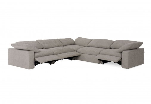 The Divani Casa Corinth Modern Gray Fabric Sectional Sofa is a luxurious addition to any living space. Upholstered in 100% polyester fabric in a sophisticated gray hue, this sectional exudes contemporary elegance. Its 5-piece design includes a left-hand facing power recliner, a right-hand facing power recliner, an armless power recliner, an armless chair, and a corner. The solid and manufactured poplar wood frame ensures durability, while the black plastic legs provide stability. Sink into comfort with foam-filled seat cushions and enjoy the support of sinuous springs seat construction. The square arms add a sleek touch to this modern sectional.