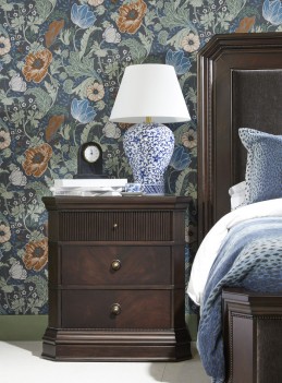 Indulge in the timeless elegance of our Revival Upholstered Bed and create a space where you can relax and rejuvenate in style. Meticulously crafted with attention to detail, this bed is a luxurious centerpiece for your bedroom sanctuary. The headboard and footboard of this bed feature sumptuous upholstered channeled panels, upholstered in decadent charcoal velvet fabric. Not only does this provide a plush and inviting feel, but it also adds a touch of opulence to your sleeping space, while the rich Napa Mahogany finish adds warmth and depth to any bedroom décor.