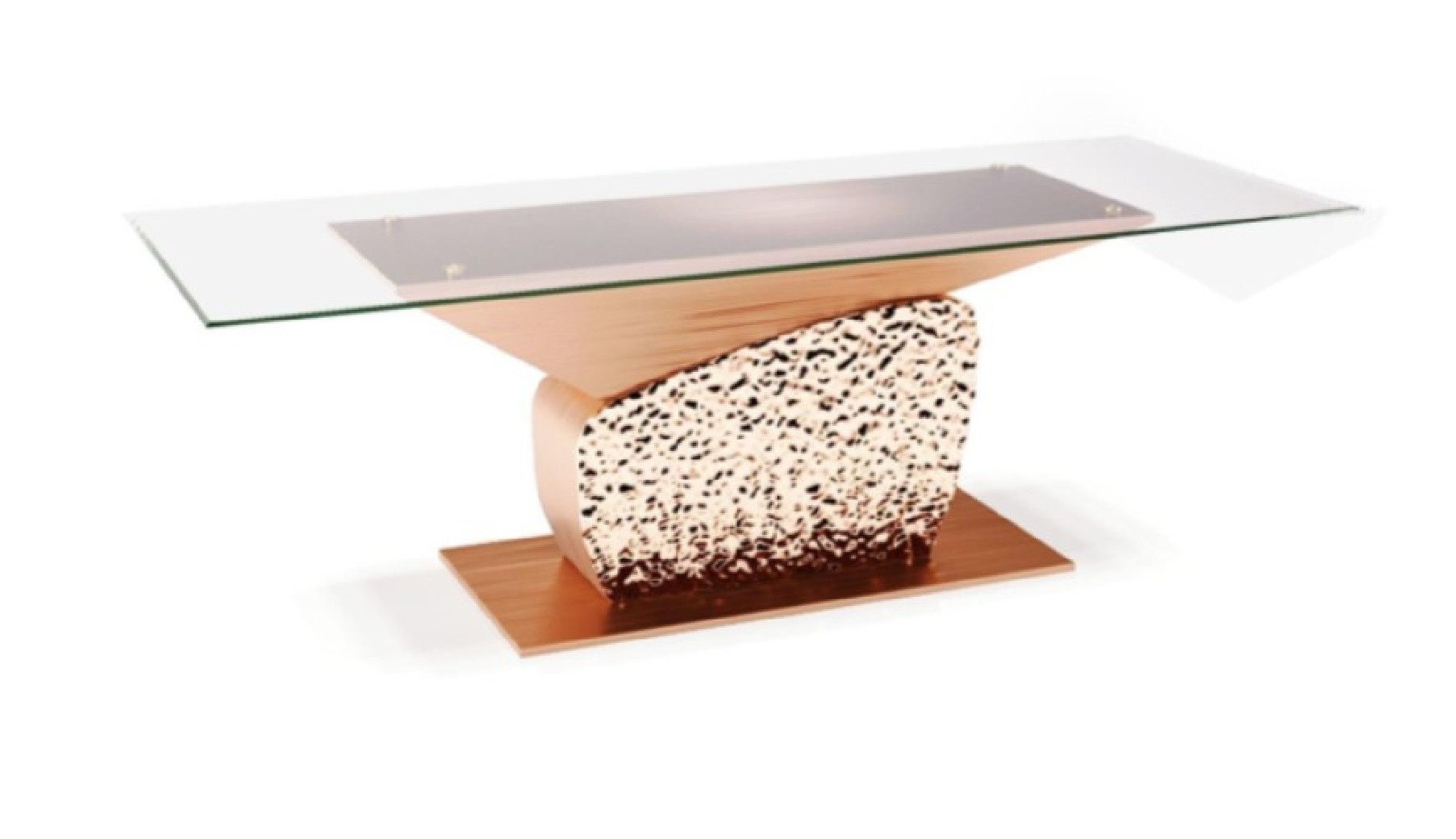 Upgrade your dining space with the Bologna Dining Table by Roberto Grassie. Crafted with polished hammer stainless steel and brushed metal, it features a sleek 15mm thick glass top with flat polish edge. The base, available separately in rose gold, silver, or titanium gold, supports up to 120 inches of glass. Experience modern elegance and versatility in one captivating piece.