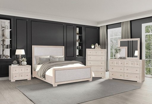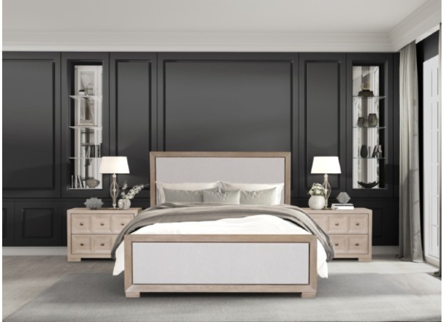 5Pc Bedroom set. Queen Bed, 2 Oversized Nightstands, Dresser & Mirror.