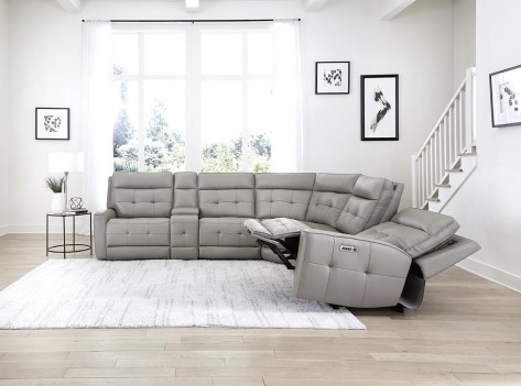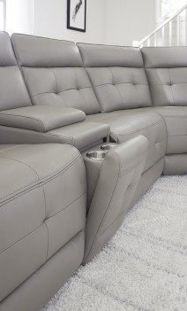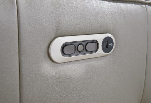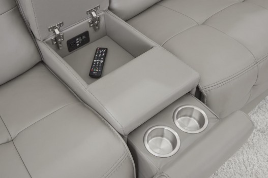 Console features tilting cupholders, a USB/USB-C port, and a power outlet