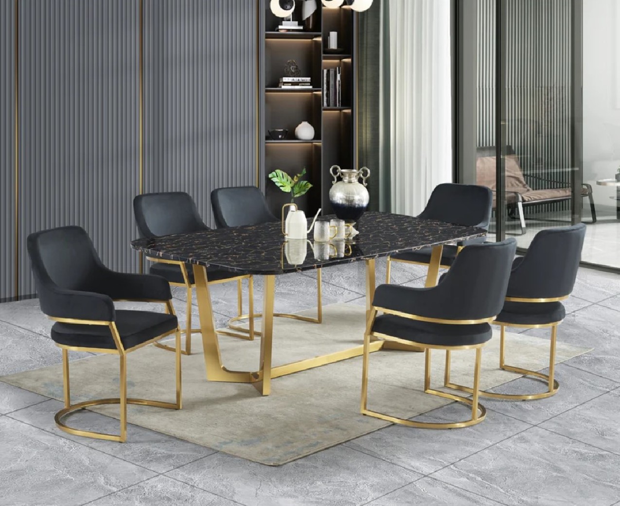 D2002 7PC Contemporary Dining Set Marble Top by McFerran Home Furnishings