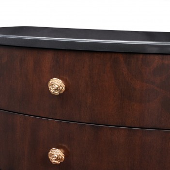 The perfect companion to your bedside, this nightstand exudes understated charm with its gently curved silhouette and rich walnut finish. Its black marble top adds an element of refinement, while the camellia flower hardware lends a soft romantic touch. Designed for both beauty and practicality, it keeps your nightly essentials close at hand.