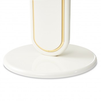 Sleek and sophisticated, the Sassani End Table is a perfect accent piece for any modern living space. Its pearl white lacquer finish exudes luxury, while the gold accents add a refined touch of elegance.
