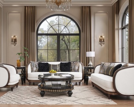 Elevate your living space with the timeless elegance of the HD-9043 3PC Sofa Set, a masterpiece of refined design and luxurious comfort. This exquisite collection includes a plush sofa, a perfectly proportioned loveseat, and a stately armchair, all crafted to create an ambiance of sophistication. The harmonious contrast of soft, light upholstery and richly detailed dark wood frames lends a touch of grandeur to each piece. Designed for both style and relaxation, the set features generously padded cushions and thoughtfully crafted supportive backrests, ensuring comfort for everyday use or special occasions. A true testament to exceptional craftsmanship, the HD-9043 3PC Sofa Set will transform your home into a space of captivating beauty and distinction.