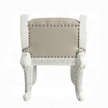 Luxurious style, sophisticated charm, and lustrous finishes are all included in the Vanaheim Bedroom Collection. Extravagant scroll floral design with gold trim accent creates classic appeal and timeless silhouettes. Button tufted headboard and footboard add texture and dimension to the panel bed. The matching casegoods in an antique white finish echo the overall design of the collection.'With so many irreplaceable characters, the Vanaheim Bedroom Collection will work beautifully in a variety of other spaces.
