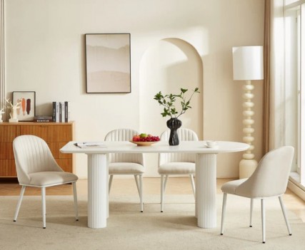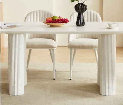 DT0223CM  7PC Dining Set Modern Style Matte White Finish by Artisan Furniture