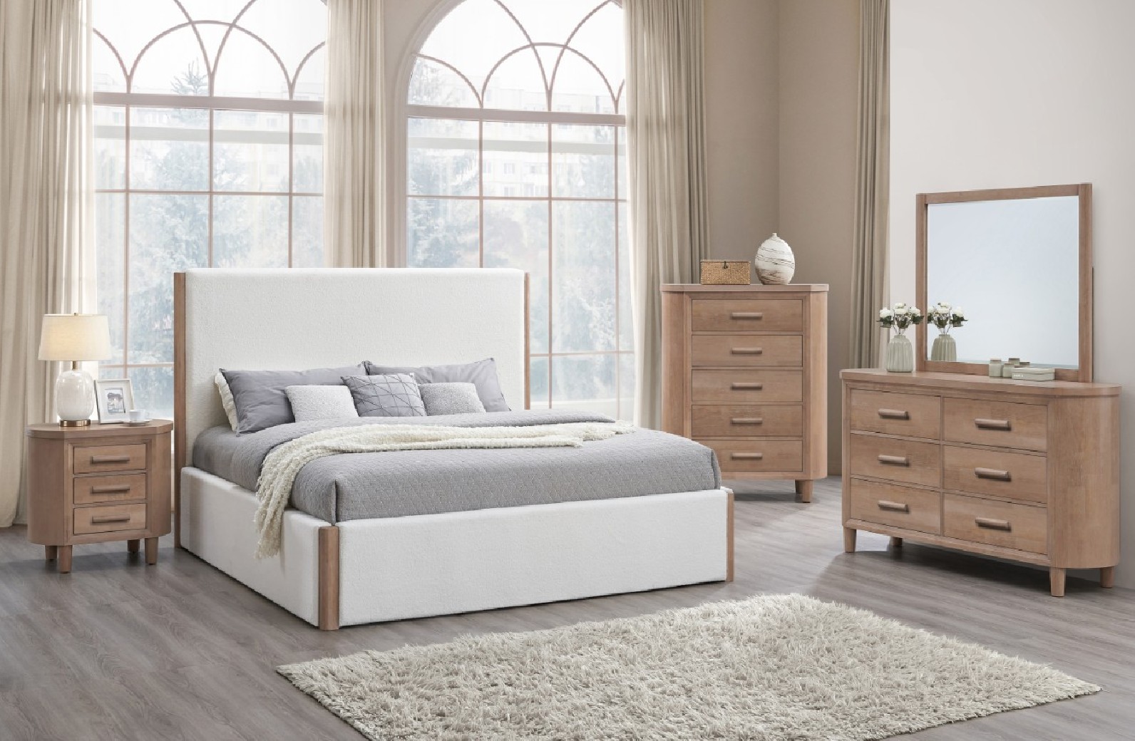 5Pc Set .Queen Bed ,2 Nightstands, Dresser & Mirror
