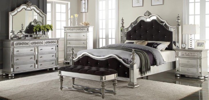 5Pc Bedroom set. Queen Bed, 2 Nightstands, Dresser & Mirror.