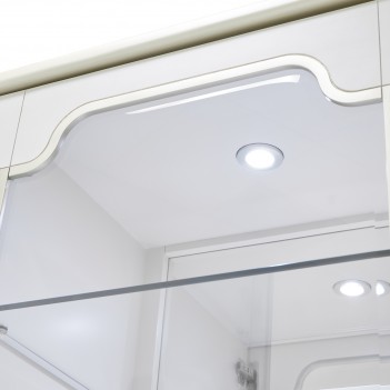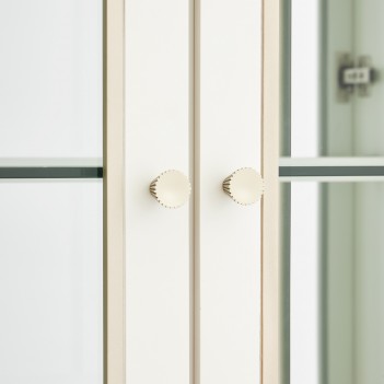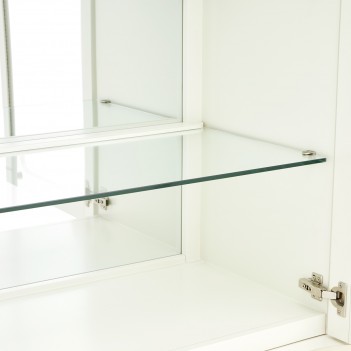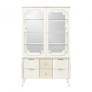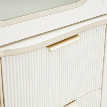Showcase your most treasured pieces in an exquisite display of elegance. The La Marisia Display Cabinet captivates with its refined pearl finish and champagne accents, blending sophistication with modern luxury. Glass doors frame spacious glass shelves, illuminated by touch-activated LED lighting and a mirrored back panel that enhances the brilliance of your display. Ribbed side drawers and faux-shagreen center drawer fronts add depth and texture, while six velvet-lined drawers glide effortlessly on soft-close mechanisms for discreet storage.
