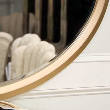 Striking in its simplicity, the Fantosini Gold Round Mirror offers a radiant finishing touch to your interior. Framed in a lustrous gold finish, its perfectly rounded silhouette and beveled mirror edge reflect light with soft sophistication. Whether styled above a sideboard, vanity, or entry console, this mirror lends a refined, gallery-worthy presence to any room.