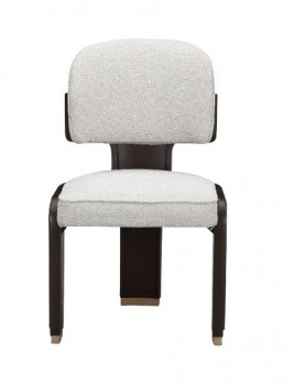 Elegant yet bold, the West Kensington Dining Side Chair is a seamless blend of modern design and timeless sophistication. Upholstered in a plush chunky woven fabric with multi-hued yarn, its soft texture contrasts beautifully against the deep espresso-finished frame. A sculptural open-back design creates a striking silhouette, while signature reeded detailing along the back and legs adds depth and refinement. Subtle gold accents at the feet complete the look, offering a touch of understated glamour.