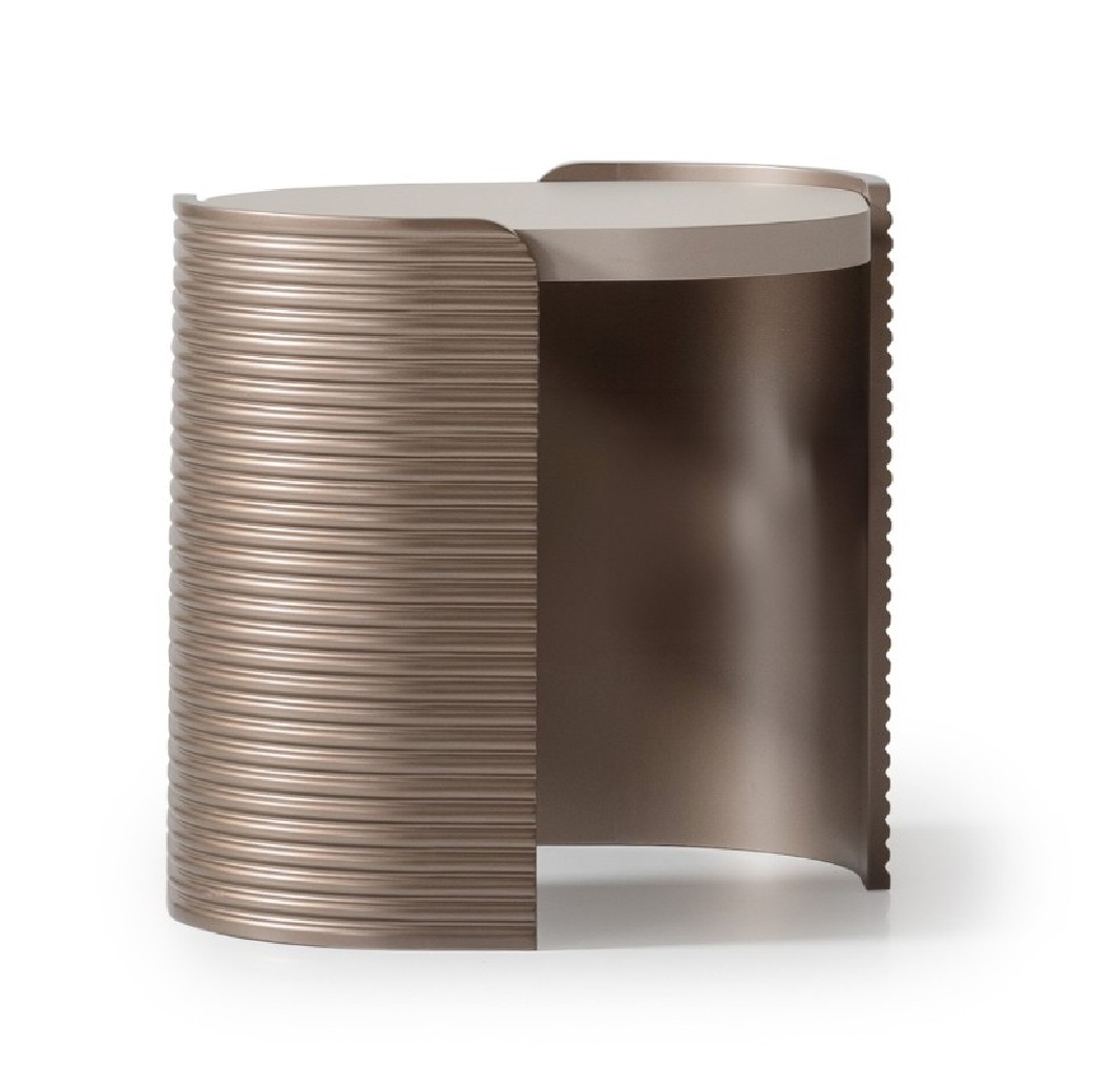Sleek, sculptural, and effortlessly refined, the Mod Dream End Table is the perfect accent for a sophisticated space. Its open sled base, adorned with rich champagne-finished ribbed details, offers a striking contrast to the smooth beige tabletop. Whether styled with a statement lamp or curated décor, this table blends seamlessly into modern and contemporary interiors while adding a touch of glamour.