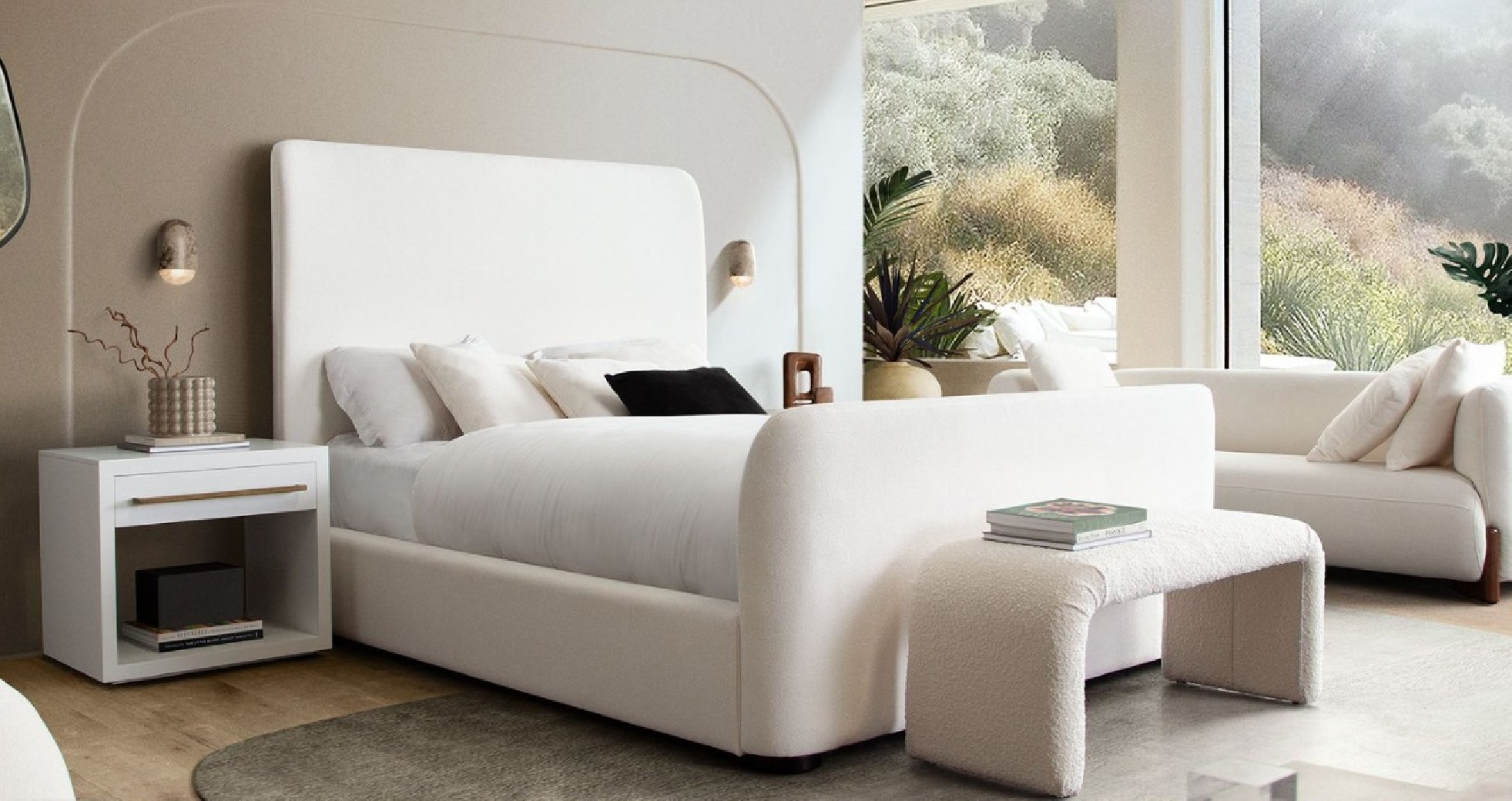 Eve Ivory Fabric Queen Bed by Diamond Sofas