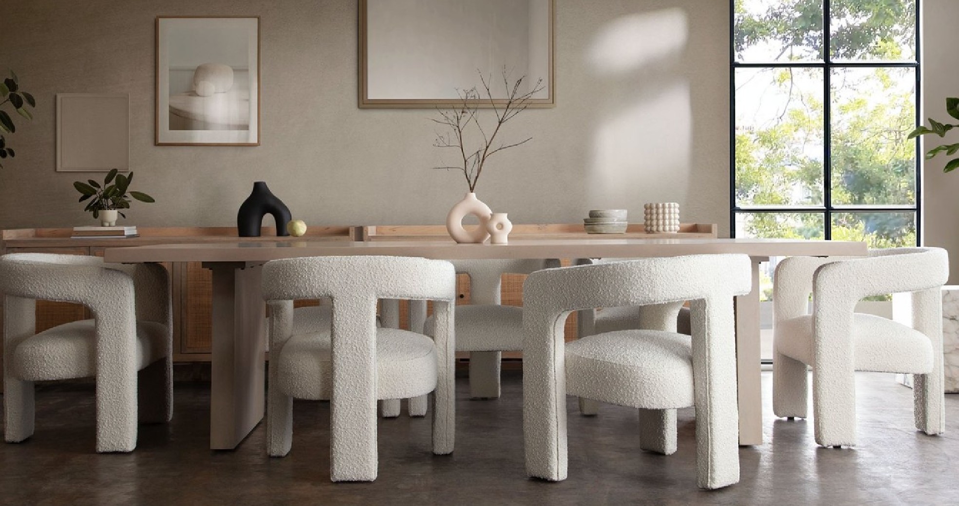 7PC Sonoma Natural Solid Mango Wood Dining Table 110" - Ivory Scout Boucle  Chairs By Diamond Sofa