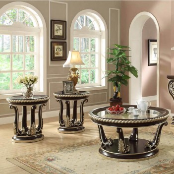 HD386 3PC Sofa , Loveseat & Chair Victorian Style Dark Brown Cherry Finish By Homey Design