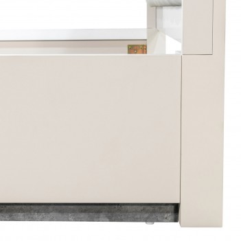 The Pavira Bed brings an understated grandeur to the room, pairing sculptural simplicity with the soft radiance of stone-inspired finishes. Its channel-tufted headboard, wrapped in smooth taupe upholstery, rises with tailored elegance, framed by luminous limestone-like inlays that glow gently at a touch. Thoughtfully integrated lighting and modern conveniences transform the bed into a serene retreat—an effortless blend of contemporary sophistication and quiet luxury.