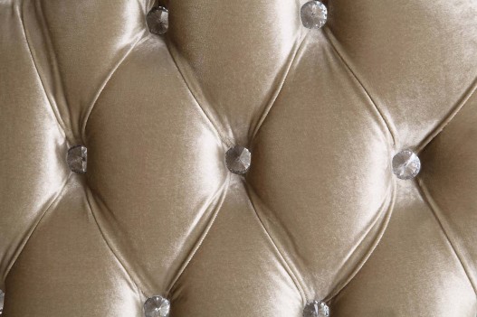 Ornate and grand, the Vanaheim sofa is sure to leave everyone impressed. The sofa features intricate moldings that are inspired by the Baroque era. The antique white finish is accentuated with gold. The bench style seating is upholstered in a damask fabric to accentuate the Baroque styling. The backrest is tufted with crystal-like buttons for a regal touch.