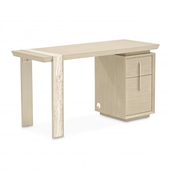 The Lotus Bay Vanity Desk embodies the art of modern luxury, where sleek design meets graceful detail. Wrapped in a serene sand finish with the refined character of white oak, its streamlined silhouette is elevated by a marbleized inlay that cascades elegantly along one leg, adding a touch of sculptural drama. Designed to be as versatile as it is beautiful, it transitions effortlessly from a chic vanity to a refined home office desk. Hidden within the top drawer are two power outlets and USB ports, offering seamless connectivity for beauty tools or laptops, while the lower drawer features rods for file organization. Finished on all sides, this exquisite piece is as striking from the back as it is from the front, ensuring it holds presence no matter where it is placed.