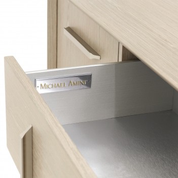 Luxury Storage: Two wide, soft-close drawers feature brushed aluminum laminate bases—offering lasting strength while protecting and organizing your media essentials.