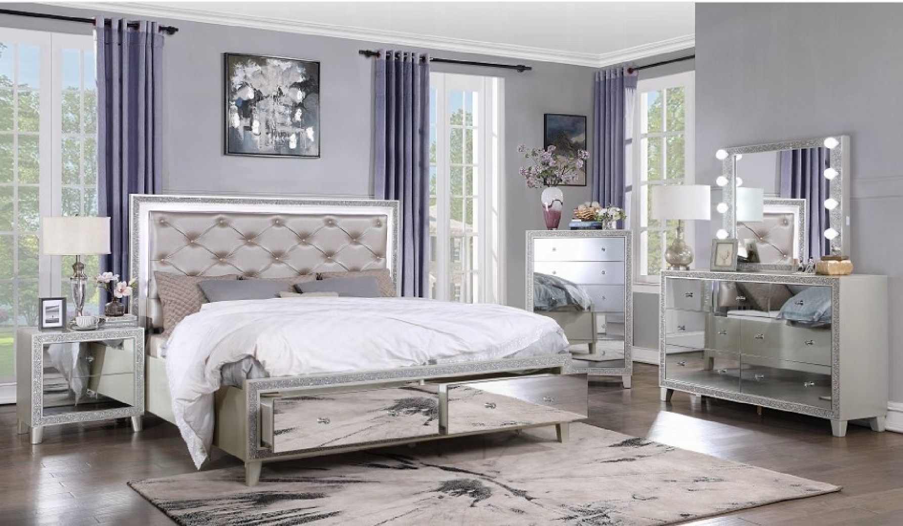 5PC Eking Bed Set includes Queen Bed 2 Nightstand ,Dresser & Mirror.