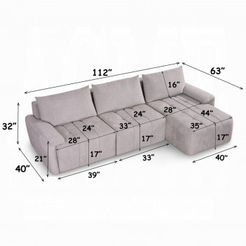 The Dorcas sofa is ready to use right out of the box, no assembly required. Its modular L-shaped design adapts to any space, making it perfect for living rooms, apartments, bedrooms, or cozy corners. Upholstered in soft gray linen and filled with high-resilience foam, it combines comfort and durability. The reversible chaise and spacious seating provide cloud-like relaxation, while each piece can be arranged independently for maximum flexibility. Stylish, versatile, and instantly comfortable, Dorcas transforms any room with ease.